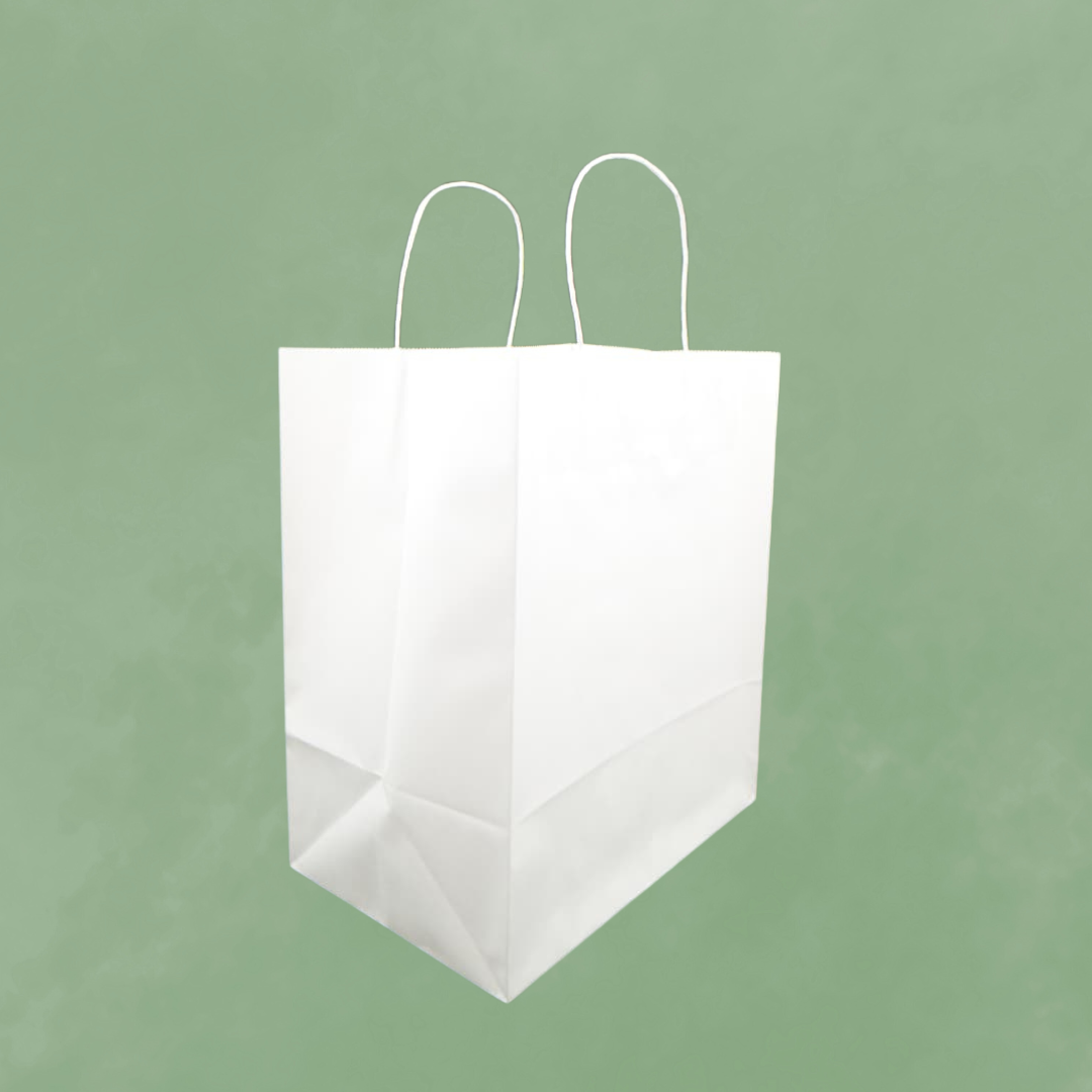 Equipped with flat or twisted paper handles, these bags provide comfortable carrying and reliable load-bearing capacity. Their crisp white finish enhances product presentation and serves as a perfect base for custom brand printing, allowing logos, taglines, or designs to stand out clearly and professionally.